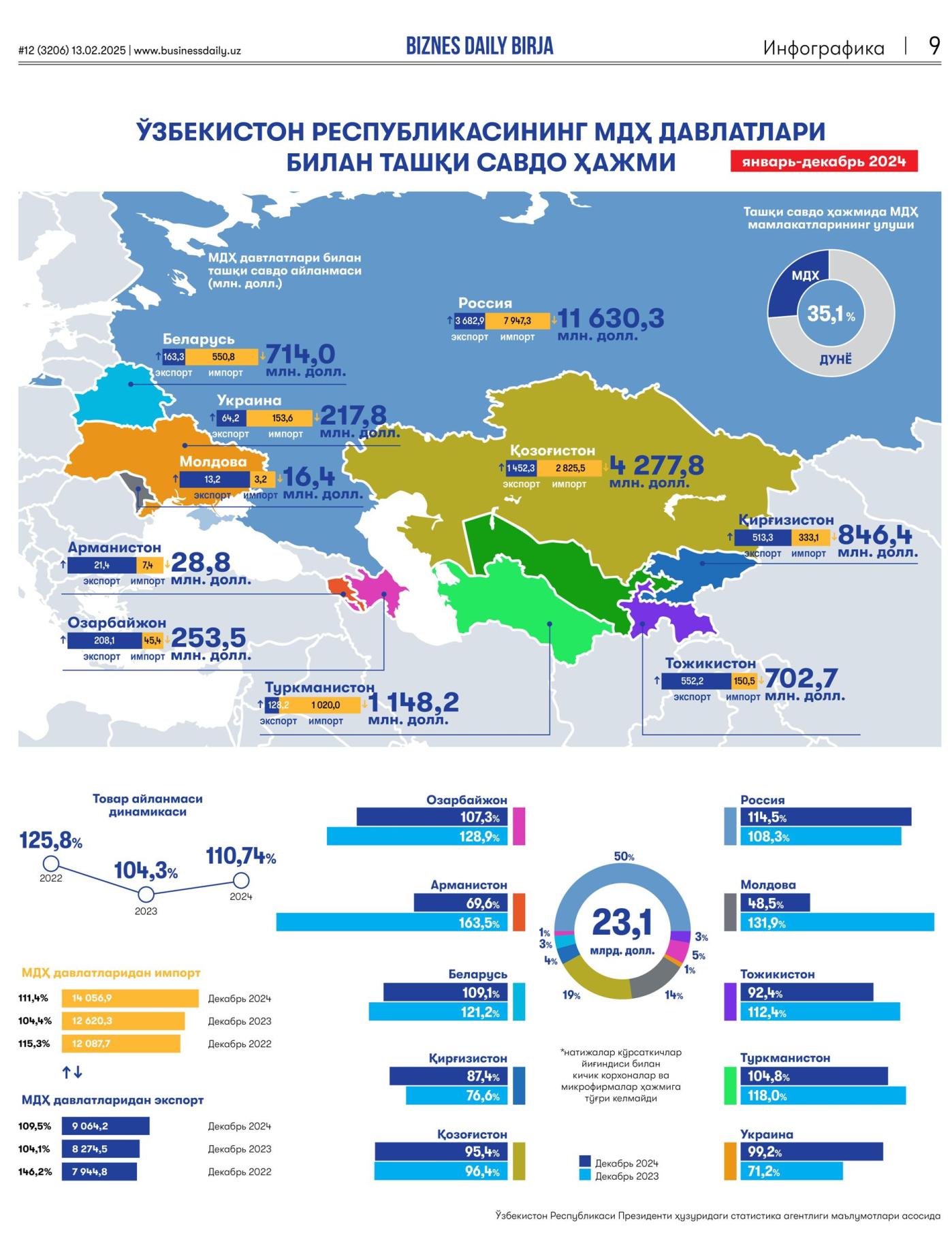 O‘zbekiston Respublikasining MDH davlatlari bilan tashqi savdo hajmi