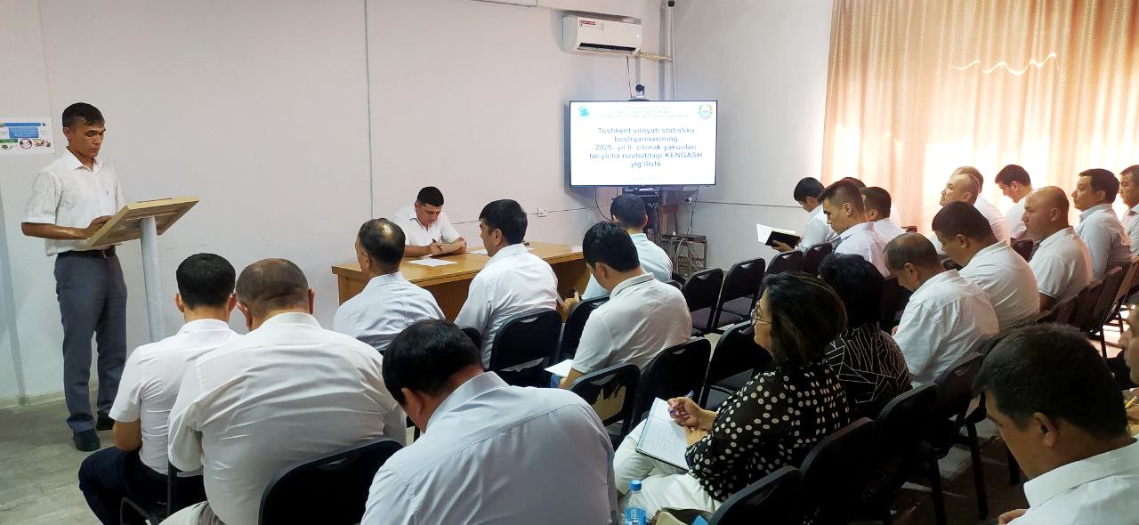 Joriy yilning 30-iyul kuni Toshkent viloyati statistika boshqarmasida 2025 yilning II chorak yakunlari boʻyicha kengaytirilgan Kengash yigʻilishi oʻtkazildi. Unda boshqarma rahbariyati, tarmoq hamda tuman (shahar) statistika bo‘lim boshliqlari ishtirok etdi.
