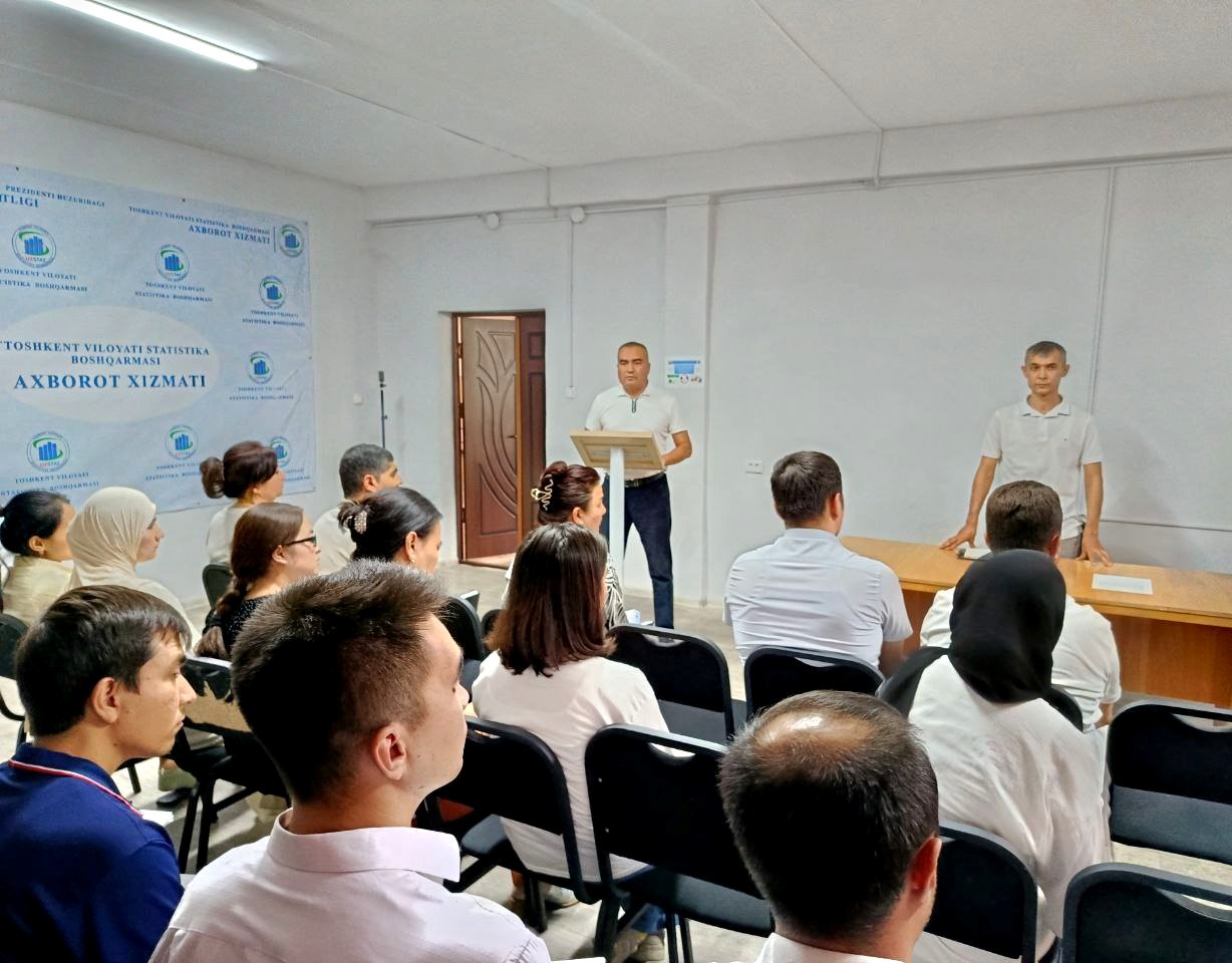 2025- yil 29- avgust kuni Toshkent viloyati statistika boshqarmasida O‘zbekiston Respublikasi Mustaqilligining 34 yilligiga bag‘ishlangan “Vatan uchun, millat uchun, xalq uchun!” shiori ostida bayram tadbiri o‘tkazildi.