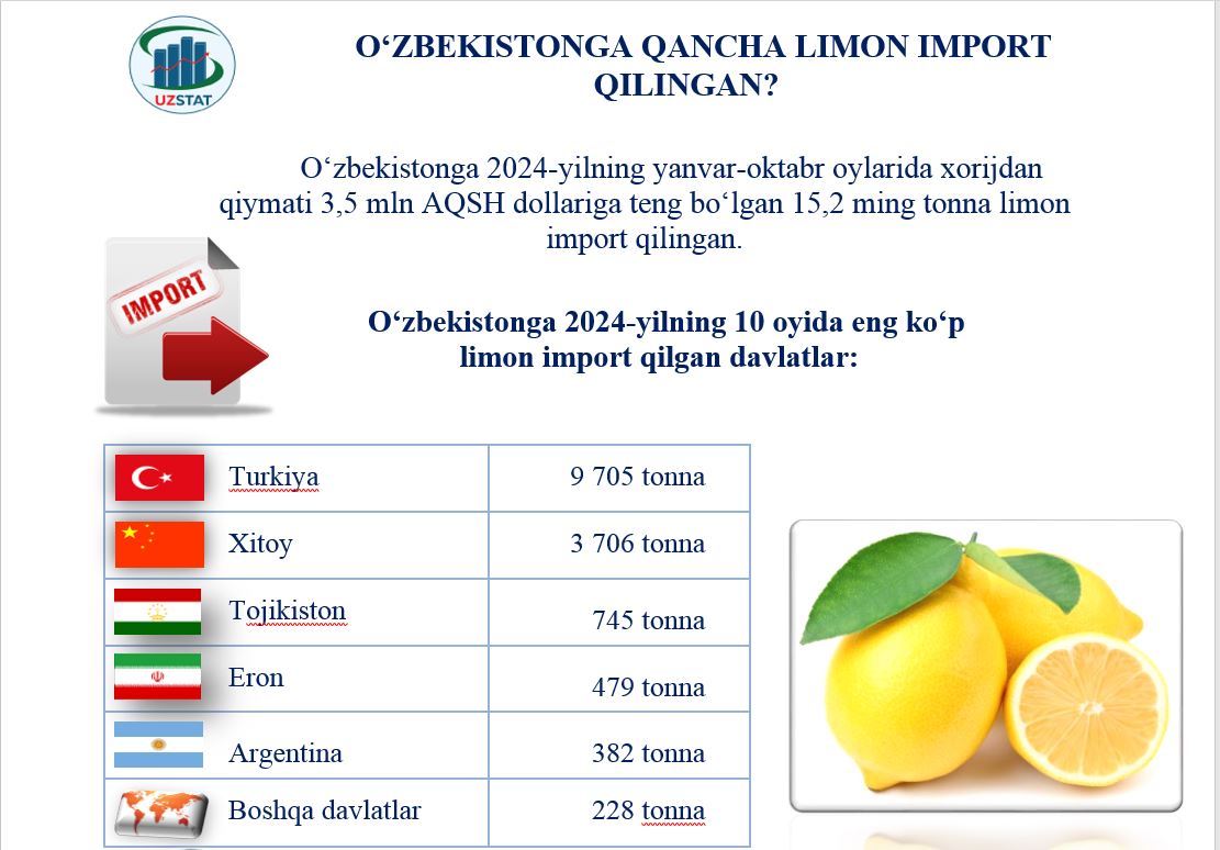 2024- yil yanvar-oktabr natijalariga koʻra MDH mamlakatlaridan import ulushi 46,1 % ni tashkil etib, 2023- yilning mos davriga nisbatan 2,3 % ga ko‘paydi
