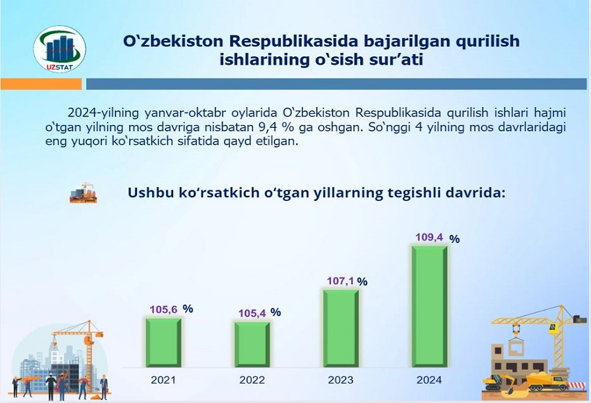 2024- yilning yanvar-oktabr oylarida Nurafshon shahrida jami 558,4 mlrd so‘mlik qurilish ishlari bajarildi