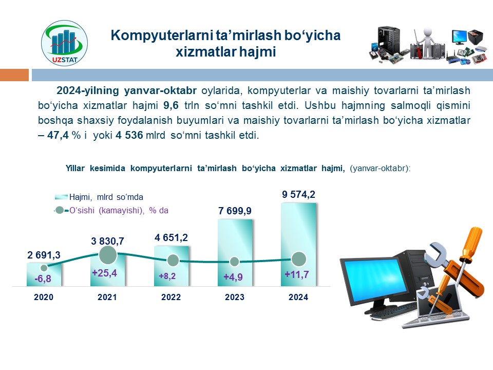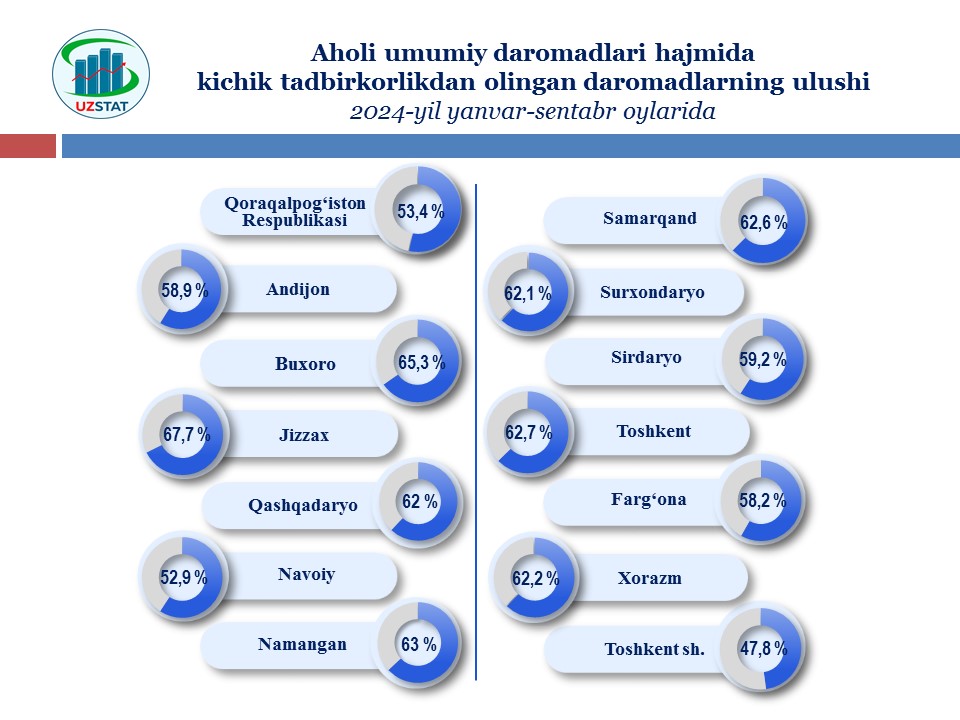2024- yilning yanvar-oktabr oylarida Toshkent viloyatida kichik tadbirkorlik subyektlari tomonidan 24511,9 mlrd so‘mlik sanoat mahsulotlari ishlab chiqarilib