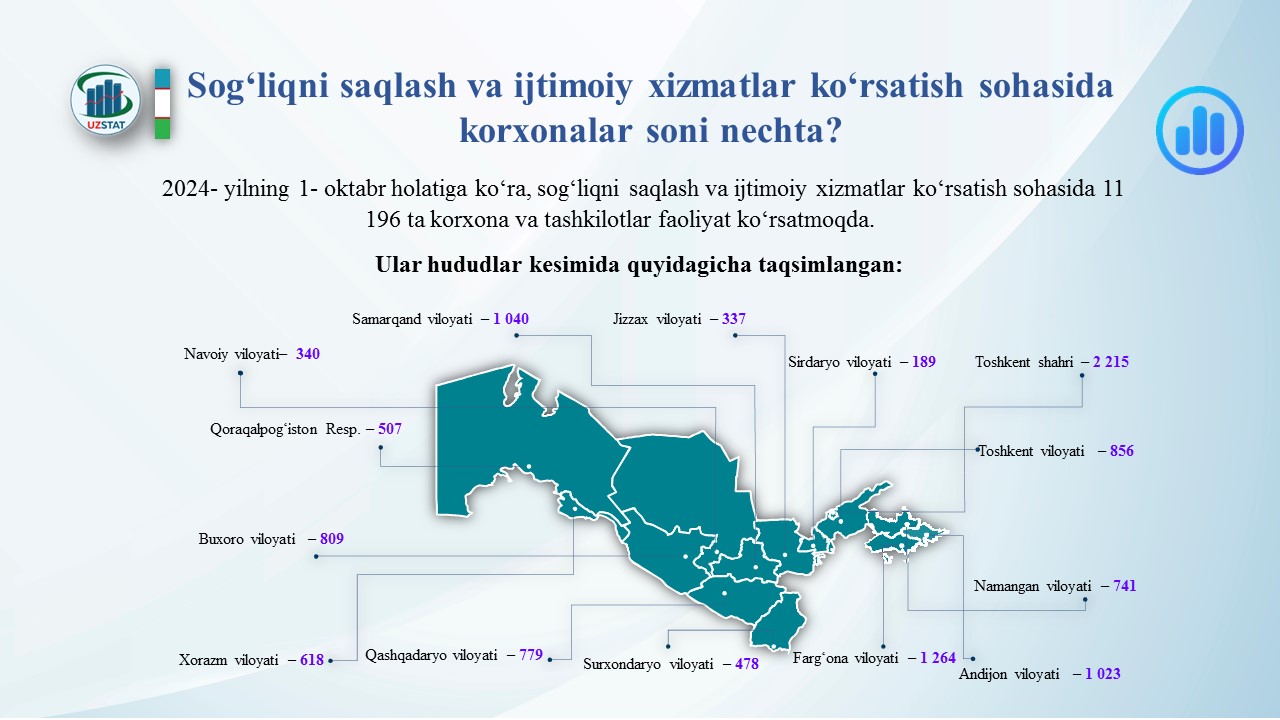 2024- yil 1- oktabr holatiga jami faoliyat ko‘rsatayotgan korxona va tashkilotlar soni