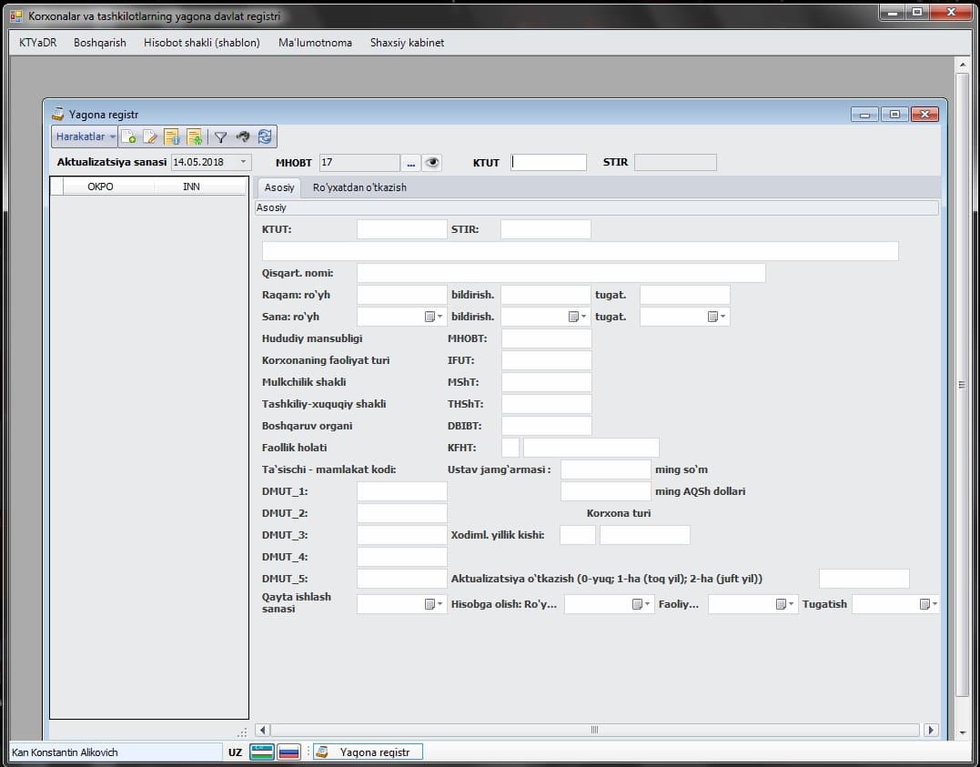 2014 йилда «Reg-System» “КТЯДР га асосланган юридик шахсларни хисобга олиш ва идентификация қилишнинг автоматлаштирилган ахборот тизими” номли махсус дастурий махсулот жорий этилди. Ушбу тизим рўйхатига олинган  давлат органлари ва бошқа давлат органларидан олинган юридик шахслар тўғрисидаги маълумотларни йиғиш, сақлаш, назорат қилиш ва таҳлил қилиш жараёнларини автоматлаштиради, шунингдек, уларни ўрнатилган тартиб бўйича давлат бошқарув органларига ва фойдаланувчиларга тақдим этишни автоматлаштиради.