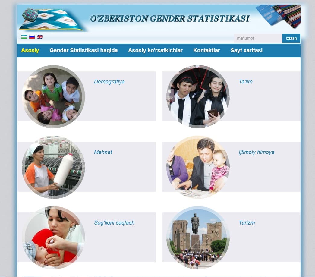 4-расм. Ўзбекистон гендер статистикаси сайтининг асосий саҳифаси
