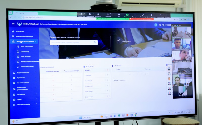 Statistika agentligining Inson resurslarini boshqarish boshqarmasi tomonidan tashkil etilgan tadbirda “Respublika va mahalliy ijro etuvchi hokimiyat organlarida inson resurslarini boshqarishga oid maʻlumotlar va hujjatlarni “hrm.argos.uz” elektron platformasida shakllantirish va yuritish tartibi haqida maʼlumotlar berildi.