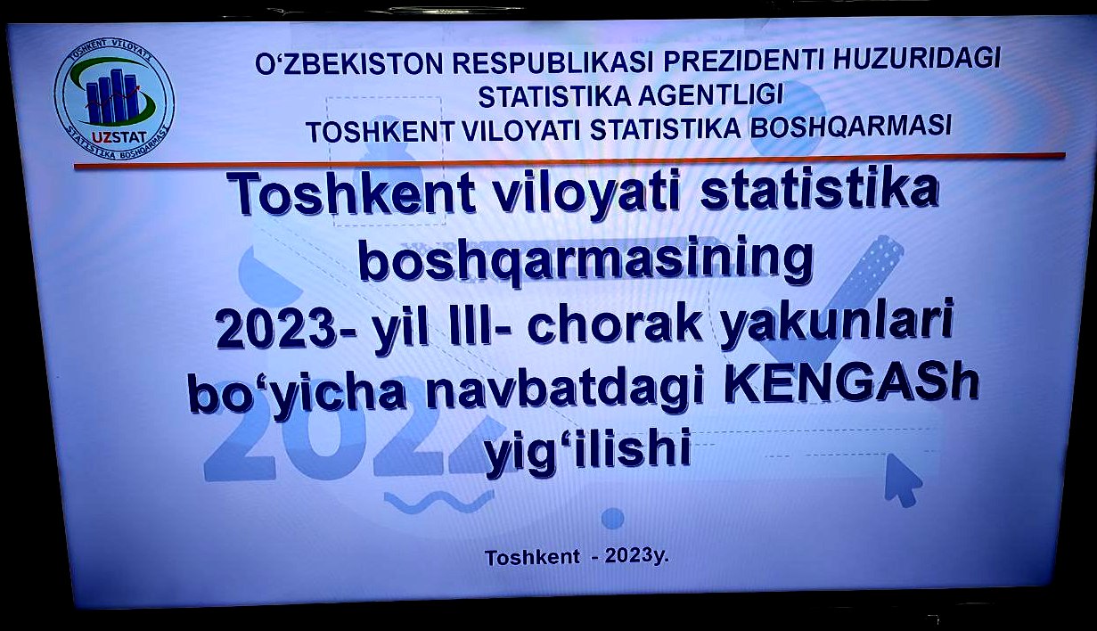 Joriy yilning 9- noyabr kuni Toshkent viloyati statistika boshqarmasida 2023- yil III chorak yakunlari boʻyicha boshqarmaning kengaytirilgan Kengash yigʻilishi oʻtkazildi. Unda Toshkent viloyati statistika boshqarmasi rahbariyati, tarmoq hamda tuman (shahar) statistika bo‘lim xodimlari va boshlig‘lari qatnashdi.