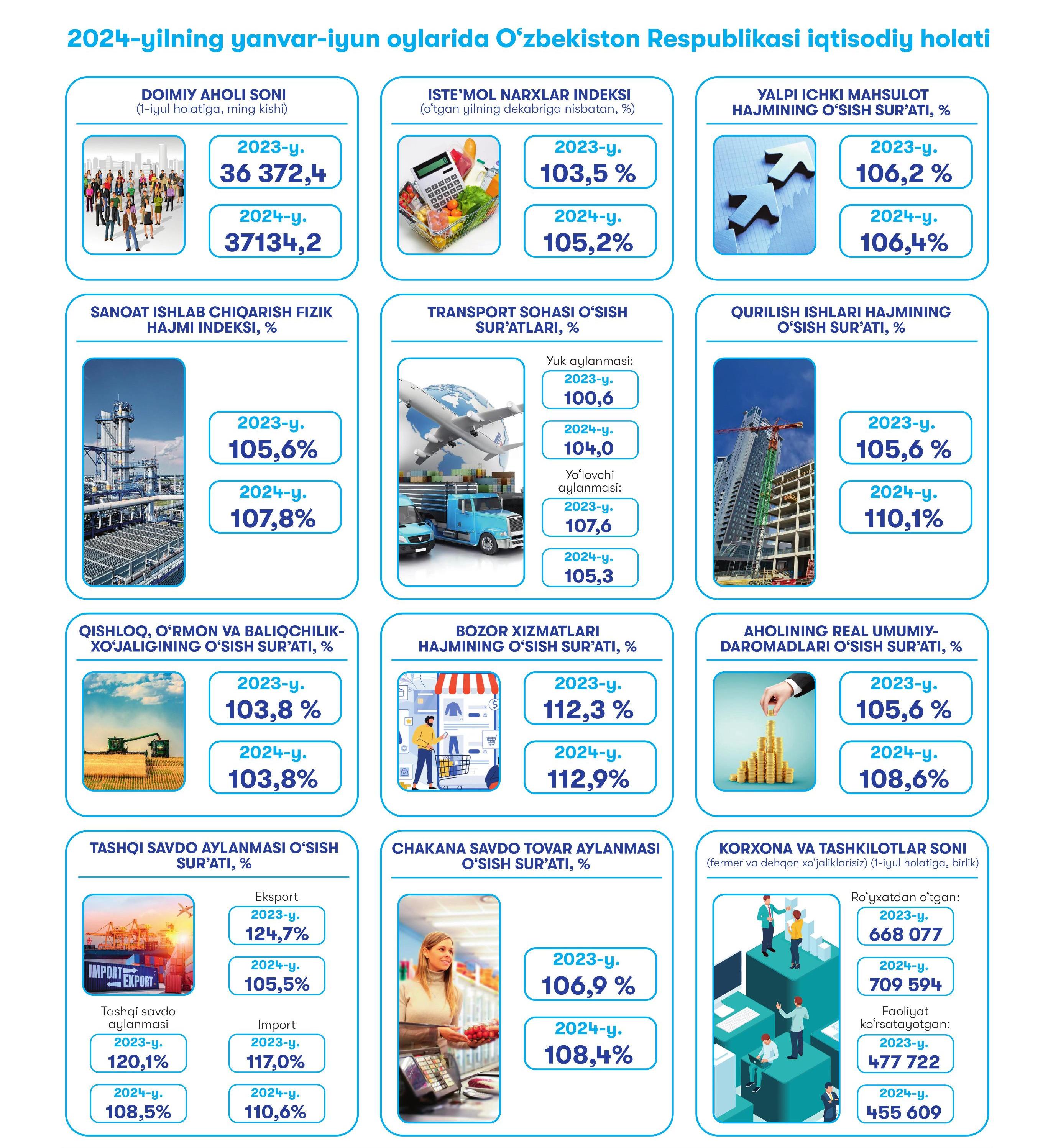 2024-yilning yanvar-iyun oylarida Oʻzbekiston Respublikasi iqtisodiy holati