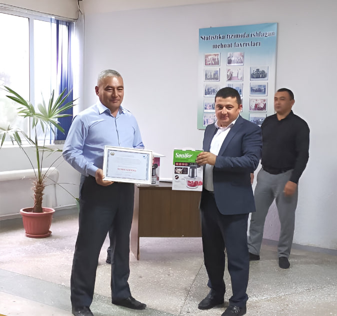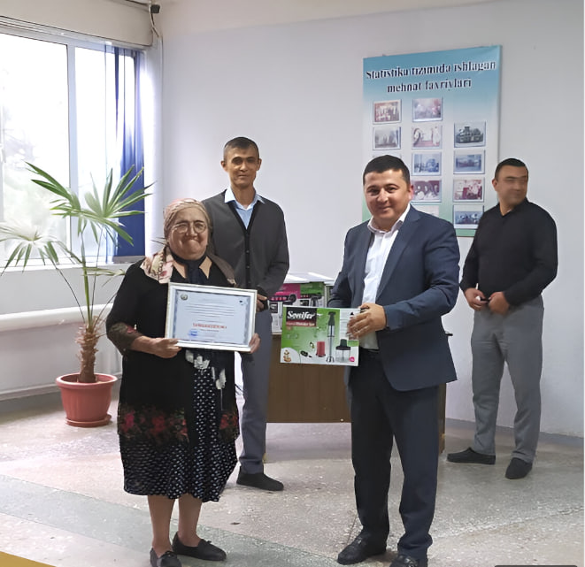 Tadbirni boshqarma boshlig‘i Sh.Jamoldinov 1-oktabr – O‘qituvchi va murabbiylar kuni bilan statistika tizimida ko‘p yillardan buyon mehnat qilib kelayotgan xodimlarni kasb bayrami bilan samimiy muborakbod etdi va ularga esdalik sovg‘alari berildi.