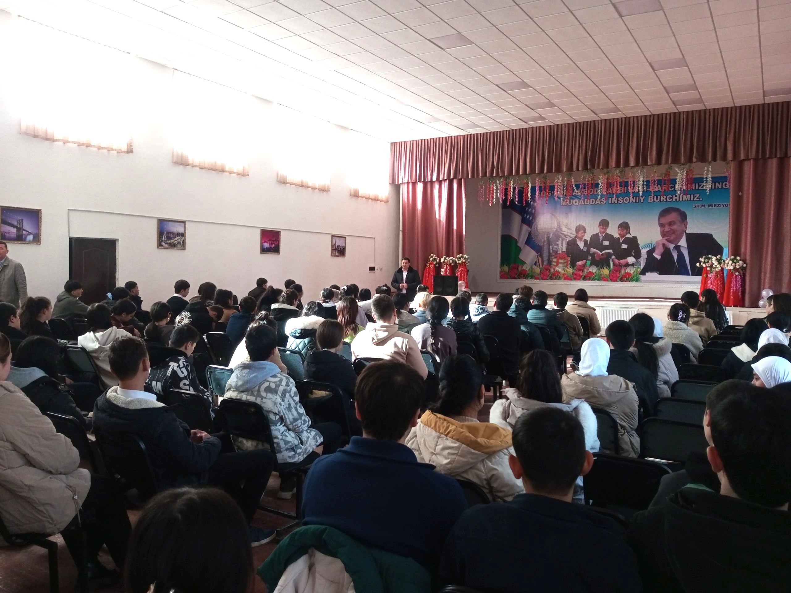 O’zbekiston Respublikasi Prezidentining “O’zbekiston Respublikasida 2022- yilda aholini ro‘yxatdan o‘tkazish konsepsiyasini tasdiqlash to‘g‘risida” 2019- yil 5-fevraldagi PF-5655-son Farmoni va Vazirlar Mahkamasining “O’zbekiston Respublikasida 2023- yilda aholini ro‘yxatga olishga tayyorgarlik ko‘rish va uni o‘tkazish chora-tadbirlari to‘g‘risida” 2020- yil 11-noyabrdagi 710- sonli qarori ijrosi bo‘yicha 2024- yilning 19-dekabr kuni Toshkent viloyati Nurafshon shahri 57- sonli sonli umumiy o‘rta ta’lim maktabida Nuarfshon shahar statistika bo‘limi boshlig‘i U.Buriyev tomonidan maktab o‘qituvchi va o‘quvchilariga seminar yig‘ilishi o‘tkazildi.