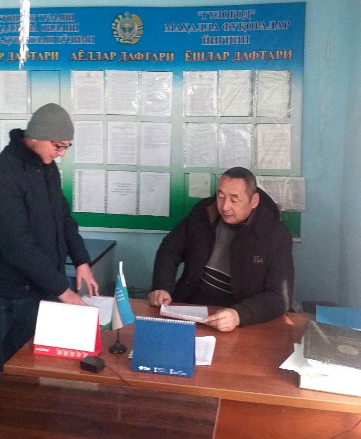 Joriy yilning 9-yanvar kuni aholini ro‘yxatga olish jarayoniga tayyorgarlik ko‘rish maqsadida Toshkent viloyatining Chirchiq shahri “H. Maqsudov” MFY, Angren shahri “Geolog” MFY, Quyi Chirchiq tumani “Chaqmoq” MFY, Bo‘stonliq tumani “Gulobod” MFYlarida statistika organlari tomonidan mahalla faollari bilan birgalikda raqamlanmagan xonadonlarga raqam o‘rnatilganligi va nom belgilari o‘rnatilmagan ko‘chalar holatini o‘rganish ishlari davom etmoqda.