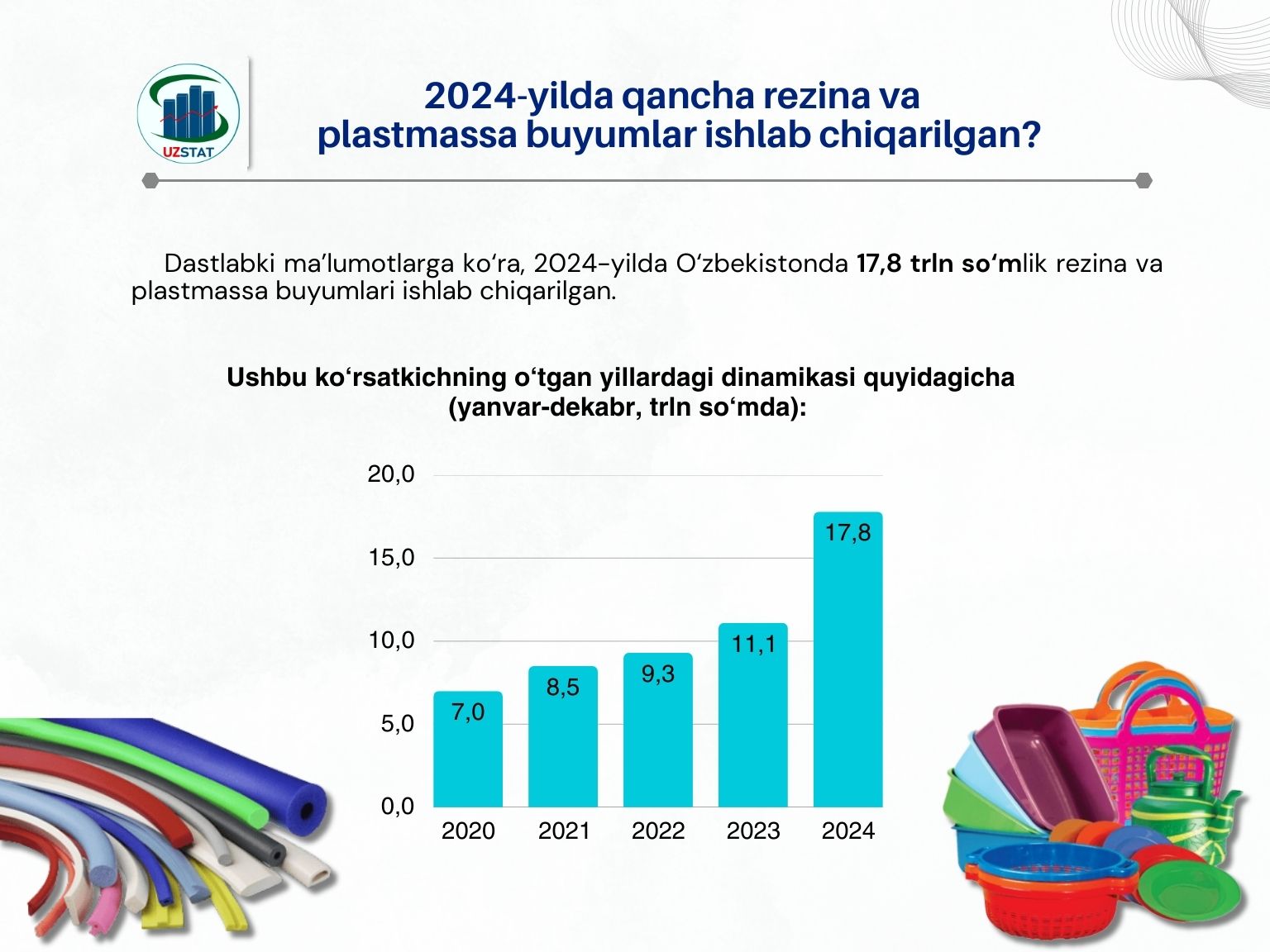 2024-yilda qancha rezina va plastmassa buyumlar ishlab chiqarilgan?