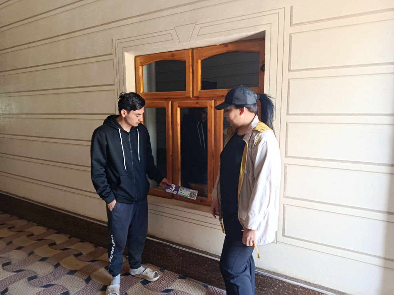 Joriy yilning 2-aprel kuni Toshkent viloyati statistika boshqarmasining “Ro‘yxatga olish jarayonlarini tashkil etish va uni o‘tkazish” bo‘limi boshlig‘i U.Sattorov, Bo‘stonliq tumani “Tolebi” mahalla fuqarolar yig‘inida bo‘lib, mahallaning yangilangan xaritasiga kiritilgan o‘zgartirishlarni joyiga chiqqan holda raqamlangan va raqamlanmagan uylarni, ko‘cha nomi belgilarining mavjudligi hamda mahalla mavjud noturar obyektlarni xarita bilan solishtirish ishlari amalga oshirildi.
