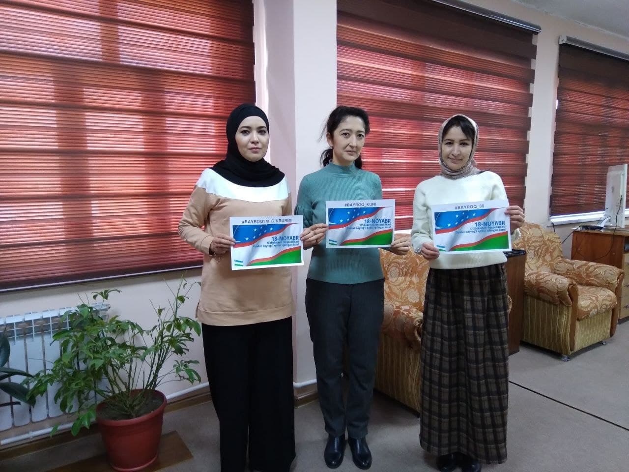 Bayrog‘imiz, g‘urur va faxrimiz timsolidir. Vatanimizning beqiyos ramzidir. Quyosh ko‘kda falakning bayrog‘i bo‘lib porlab turibdi, ko‘ngilda muhabbat bayrog‘i hilpiraydi, ongimizni esa tafakkur bayrog‘i nurlantiradi.Davlat ramzlari har bir xalqning mustaqilligi, ozodligi, tinchligi va barqarorligi timsoli hisoblanadi.Yer yuzida ikki yuzdan ortiq davlat bor va albatta, har bir davlatning o‘z ramzlari, bayrog‘i bor. Har bir bayroq ayricha rang va timsollarga ega. Ular bilan yonma-yon balqib turgan bayrog‘imiz hech kimdan kam emasligimiz va kam bo‘lmasligimizni ko‘rsatib turadi. Shuni aytishimiz lozimki, bayroq qadim-qadimdan har bir xalq uchun mustaqillik, hurlik, tinchlik va barqarorlik timsoli bo‘lib kelgan. Ajdodlarimiz ham yurt bayrog‘ini muqaddas bilib, uni ko‘z qorachig‘idek asraganlar. Davlatchiligimiz tarixining qaysi davrini olib qaramaylik, bayroq ajdodlarimiz uchun ozodlik, kuch-qudrat, jasorat, g‘alaba timsoli bo‘lgan. Mustaqil Oʻzbekiston Respublikasining “Davlat bayrog‘i to‘g‘risida”gi qonuni qabul qilinganligiga 30 yil boʻlganligi munosabati bilan “bayrogʻim_gʻururim”, “bayroq_30”, “bayroq_kuni” shiori ostida oʻtkazilayotgan oʻziga xos xeshtegda Toshkent viloyati statistika boshqarmasi xodimlari ham faol ishtirok etmoqdalar.