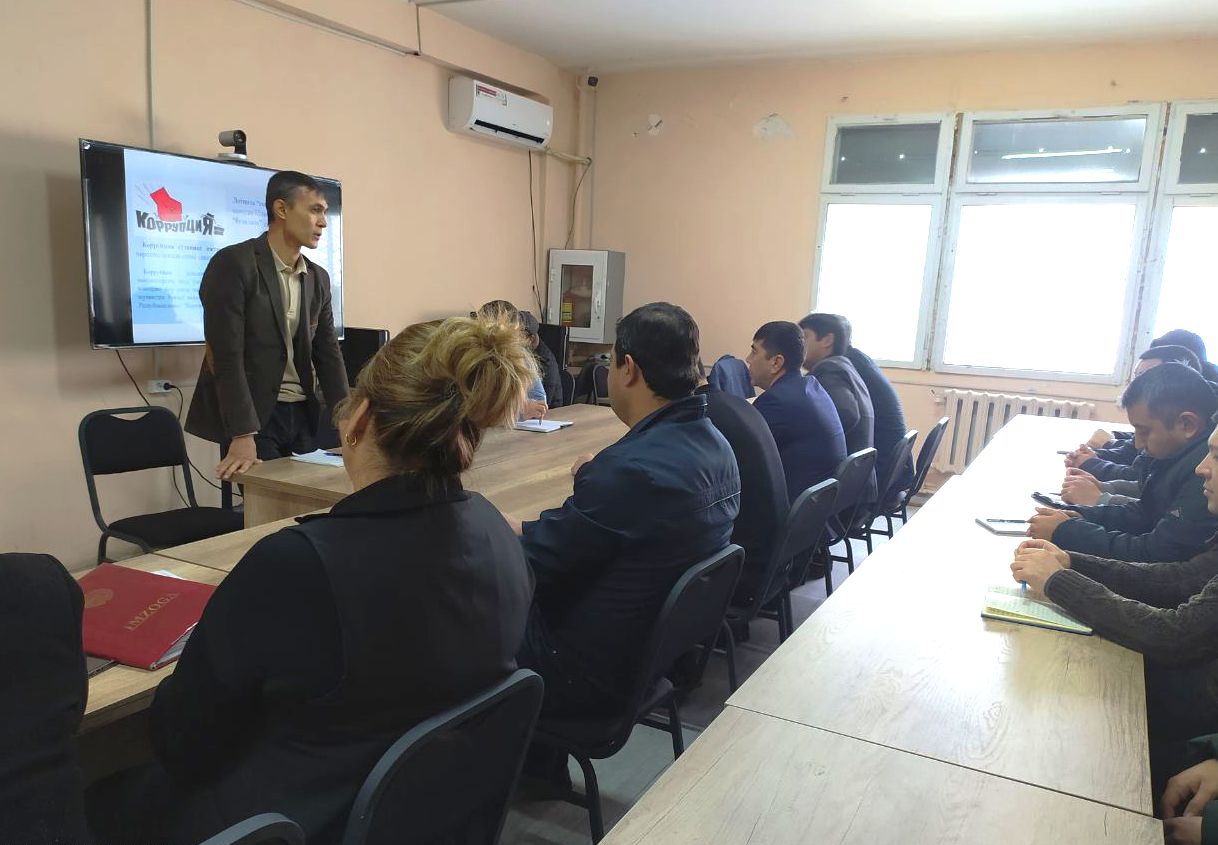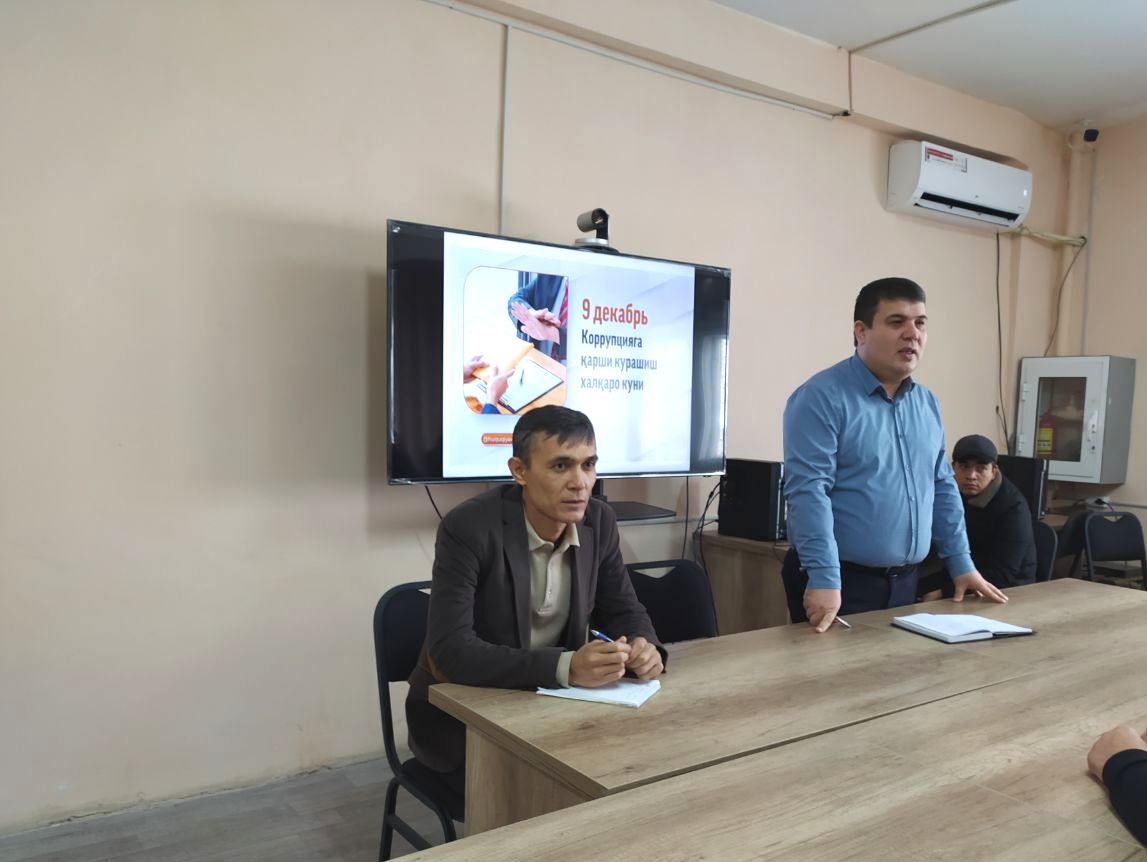 Bugun, Toshkent viloyati statistika boshqarmasida “Korrupsiyaga qarshi kurashish kuni” ga bag‘ishlangan seminar tashkil etildi. Seminarda Boshqarma boshlig‘ining o‘rinbosari E.Urunov va X.Igamberdiyev hamda boshqarmaning barcha xodimlari ishtirok etdi.