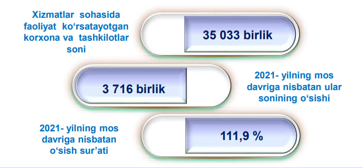 Toshkent viloyatida 2022- yilning 1- dekabr holatiga ko‘ra, xizmatlar sohasida faoliyat ko‘rsatayotgan korxona va tashkilotlarning iqtisodiy faoliyat turlari bo‘yicha tarkibi, %da (fermer va dehqon xo‘jaliklaridan tashqari)