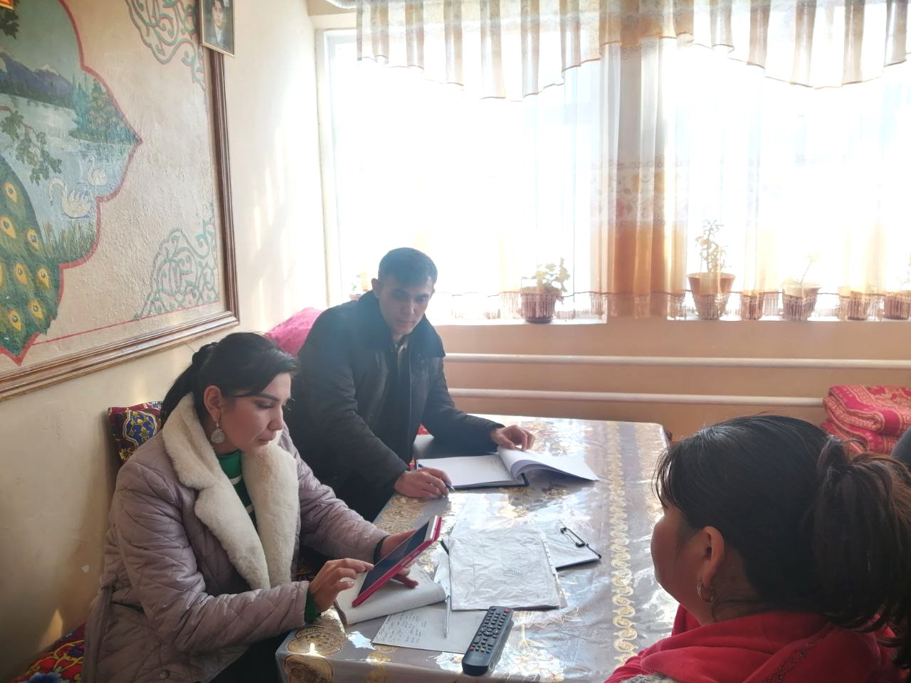 Joriy yilning 20- yanvar kuni Toshkent viloyati statistika boshqarmasi boshlig‘i o'rinbosari X. Igamberdiyev va Turmush darajasi statistikasi va uy xo‘jaliklari kuzatuvlari bo‘lim mutahassisi M.Mamagiyazova tomonidan Bo‘stonliq tumani "Dumaloq" MFY Sarikangli ko‘chasi 194 xonadonda yashovchi fuqaro Turabayev Muxtor va “Dumaloq” MFY Sarikangli ko‘chasi 192 xonadonda yashovchi fuqaro Muxridinov Jamshid va xonadon a’zolari bilan uy xo‘jaligi surovnoma o‘tkazish jarayoni.