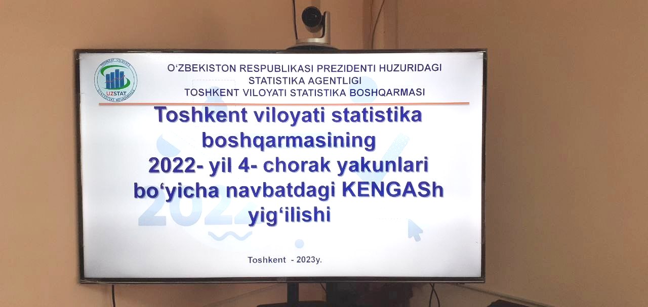 Joriy yilning 31-yanvar kuni Toshkent viloyati statistika boshqarmasining majlislar zalida 2022- yil yakunlari bo'yicha amalga oshirilgan ishlar hamda kelgusida ustuvor vazifalarga bag’ishlangan boshqarmaning kengaytirilgan Kengash yig`ilishi o‘tkazildi.