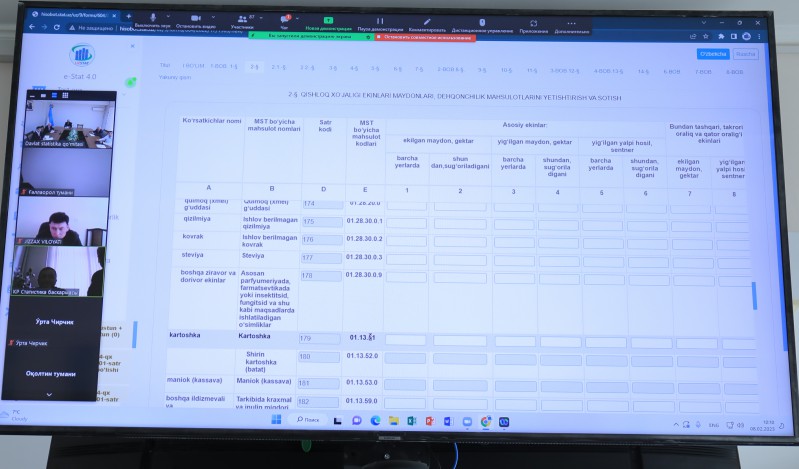 Joriy yilning 8- fevral kuni Oʻzbekiston Respublikasi Prezidenti huzuridagi Statistika agentligi tomonidan 2022-yil yakunlari boʻyicha “1- FX” yillik statistika hisobotini topshiruvchi fermer xoʻjaliklariga hisobot topshirishda uslubiy yordam berish maqsadida on-line muloqot tashkil etildi.