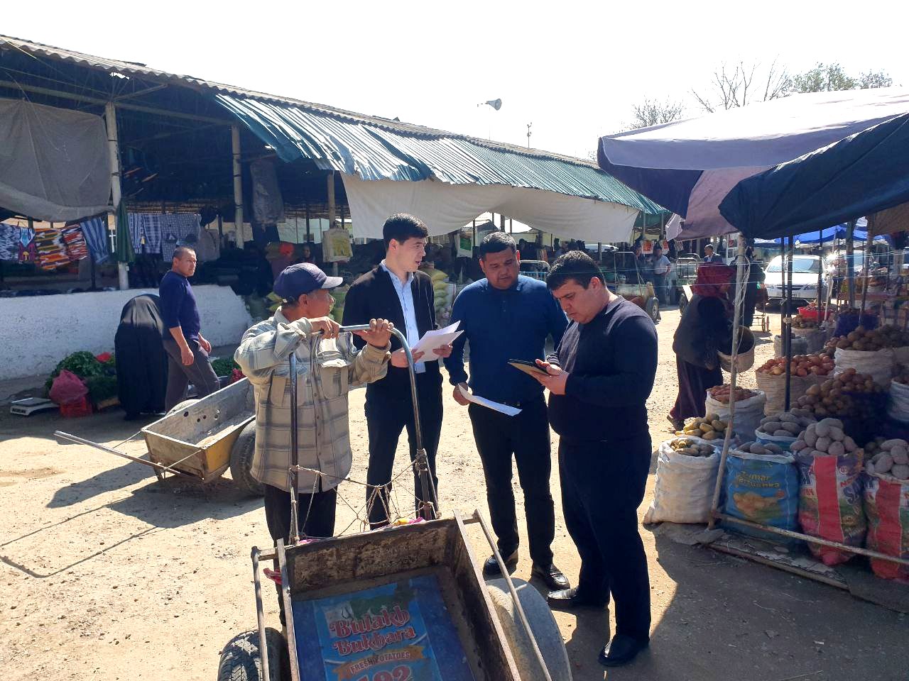 Joriy yilning 15- mart kuni Toshkent viloyati statistika boshqarmasi boshlig‘ining birinchi o‘rinbosari E.Urunov, Xizmatlar sohasi statistikasi bo‘limi boshlig‘i M.Tastanbekov hamda Chinoz tumani statistika bo‘limi yetakchi mutaxassisi D.Rustambekov bilan birgalikda Chinoz tumanida bozor xizmatlarini ko‘rsatuvchi jismoniy shaxslarning tanlanma kuzatuvi o‘tkazildi.Kuzatuv jarayonida olingan ma’lumotlar joyida planshet qurilmasiga kiritildi.