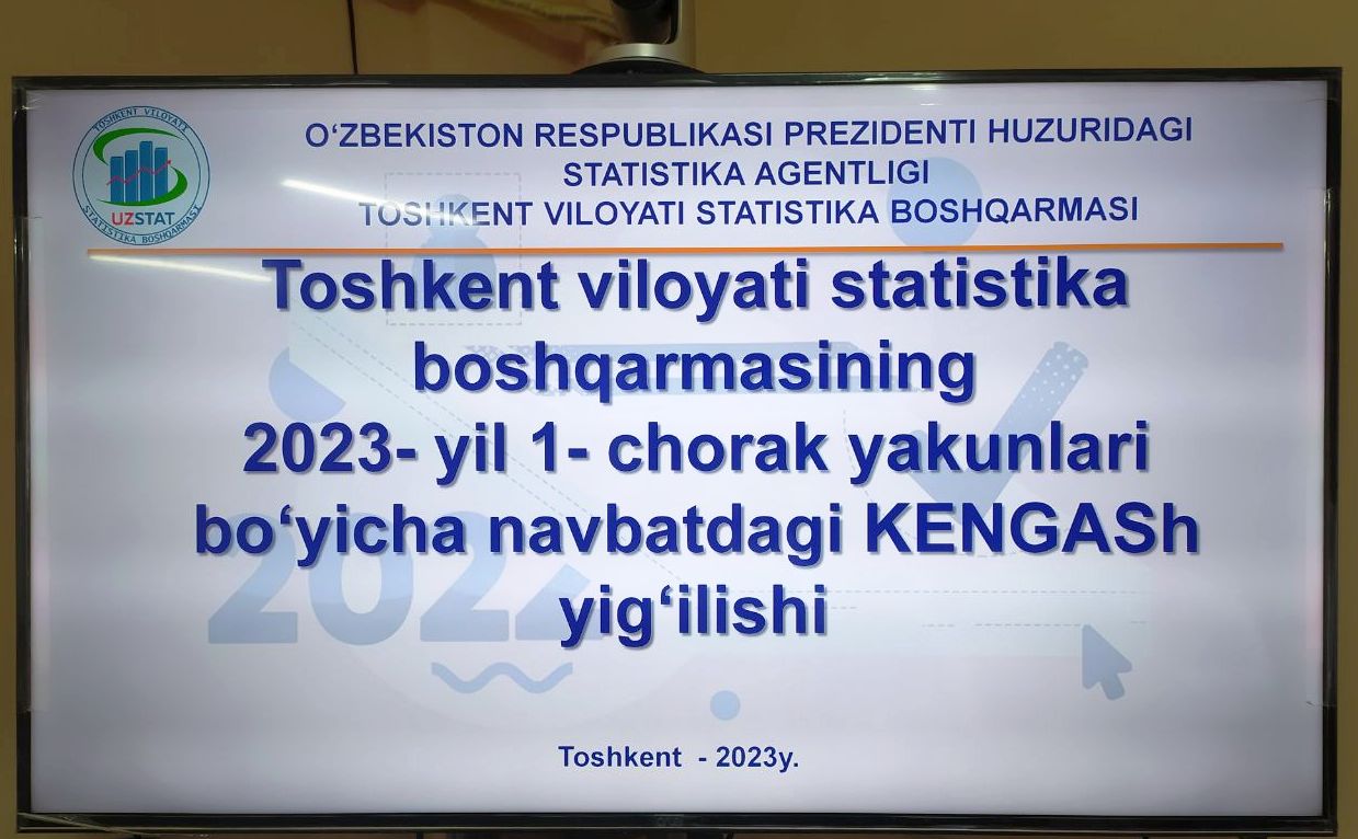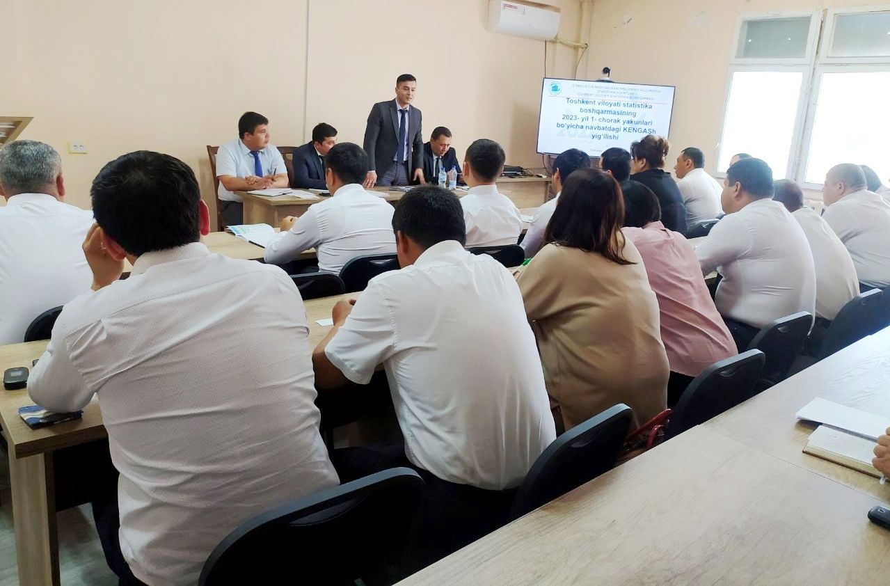 Joriy yilning 4-may kuni Toshkent viloyati statistika boshqarmasining majlislar zalida 2023- yil I chorak yakunlari bo'yicha amalga oshirilgan ishlar hamda kelgusida ustuvor vazifalarga bag’ishlangan boshqarmaning kengaytirilgan Kengash yig`ilishi o‘tkazildi.