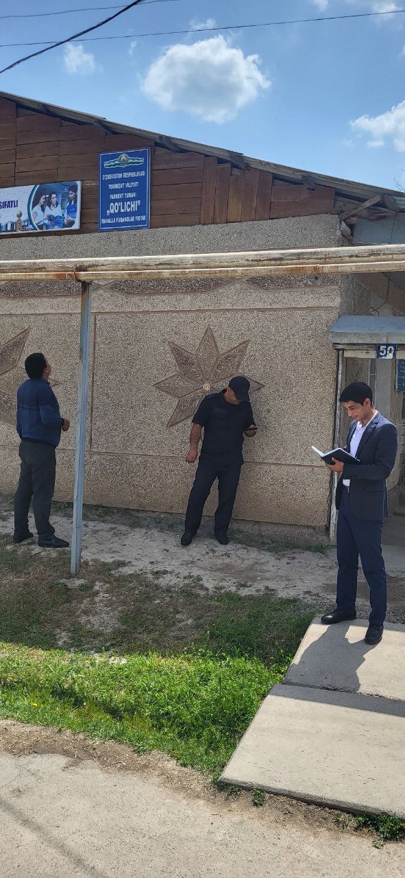 ⚡️Joriy yilning 18- may kuni Toshkent viloyati statistika boshqarmasining “Ro‘yxatga olish jarayonlarini tashkil etish va uni o‘tkazish” bo‘limi yetakchi mutaxassisi A.Toymasov tomonidan Parkent tumanining “Qo‘lichi” mahallalari fuqarolar yig‘ini faollari bilan hamkorlikda mahalla xaritasiga kiritilgan o‘zgartirishlarni joyiga chiqib, noturar binolarni hamda raqamlanmagan uylarni xarita bilan solishtirish ishlari amalga oshirildi