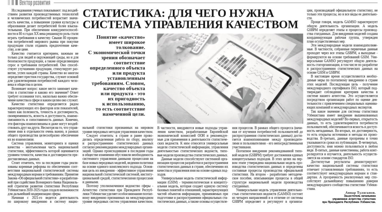 “Правда Востока” gazetasining 2023- yil 3- fevraldagi 23- sonida O‘zbekiston Respublikasi Prezidenti huzuridagi Statistika agentligi