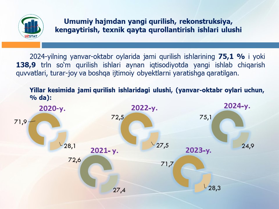 2024- yil yanvar-sentabrida kichik tadbirkorlik subyektlari tomonidan amalga oshirilgan qurilish ishlari hajmi 425,8 milliard so‘mni
