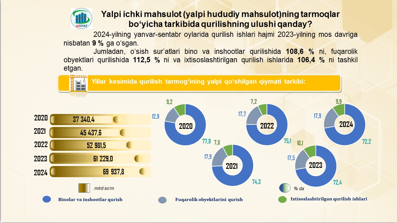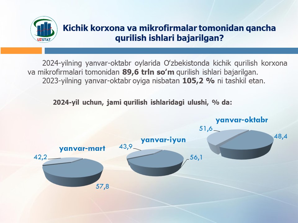 2024- yilning yanvar-oktabr oylarida Toshkent viloyatida ijara xizmatlari hajmi 811,8 mlrd so‘mga yetdi