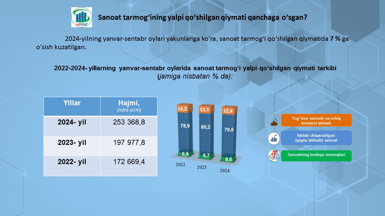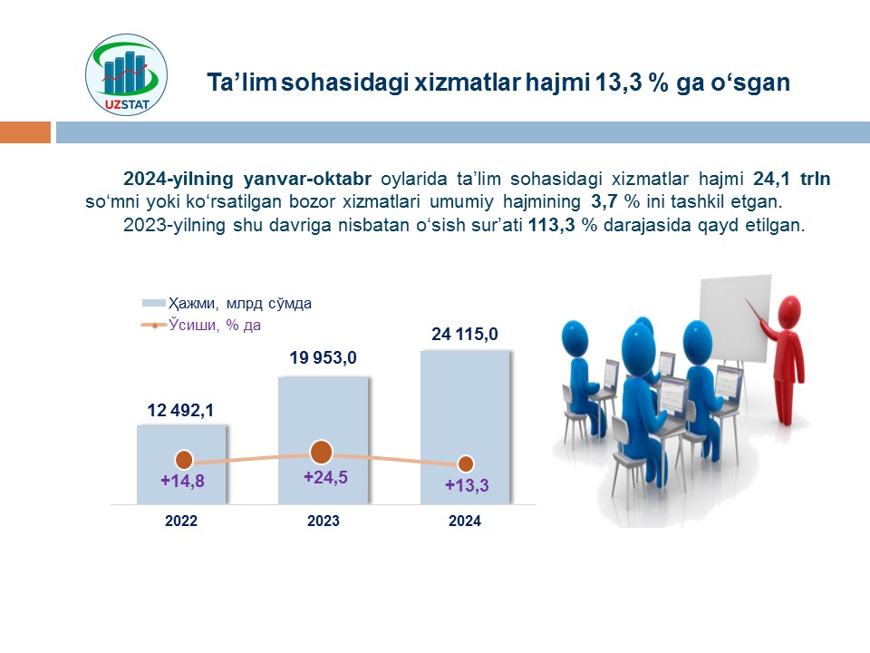 “Biznes Daily Birja” gazetasining 2024-yil 3-dekabrdagi 94-95-sonida Oʻzbekiston Respublikasi Prezidenti huzuridagi Statistika agentligining maʼlumotlari asosida yanvar-oktabr oylarida Oʻzbekiston Respublikasi iqtisodiy holati raqamlarda aks ettirilgan