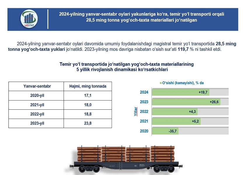 2024- yilning yanvar-sentabr oylarida Toshkent viloyatida to‘qimachilik mahsulotlari ishlab chiqarishning ulushi 4,8 % ni tashkil etgan
