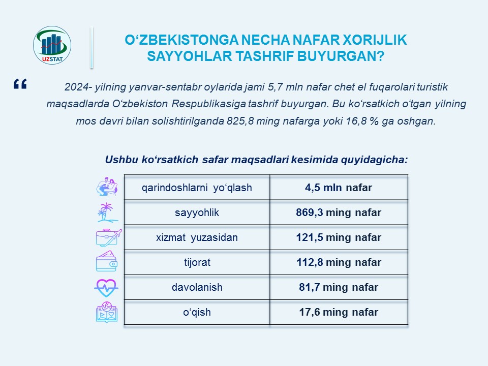Joriy yilning 31- oktabr kuni Oʻzbekiston Respublikasi Prezidenti huzuridagi Statistika agentligida Qoraqalpogʻiston Respublikasi, viloyatlar va Toshkent shahar statistika boshqarmalarining Xizmatlar sohasi statistikasi boʻlimi xodimlari uchun xizmatlar sohasi statistikasiga oid koʻrsatkichlar va ularni shakllantirish tartibi boʻyicha amalga oshirilayotgan ishlar holati hamda kelgusidagi ustuvor vazifalar yuzasidan onlayn vebinar tashkil etildi