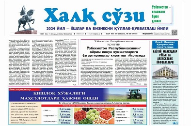 “Xalq soʻzi” gazetasining 2024-yil 21-fevaraldagi 38-sonida Oʻzbekiston Respublikasi Prezidenti huzuridagi Statistika agentligining maʼlumotlari asosida qishloq, oʻrmon va baliqchilik xoʻjaliklari mahsulotlarining umumiy hajmi raqamlarda aks ettirilgan
