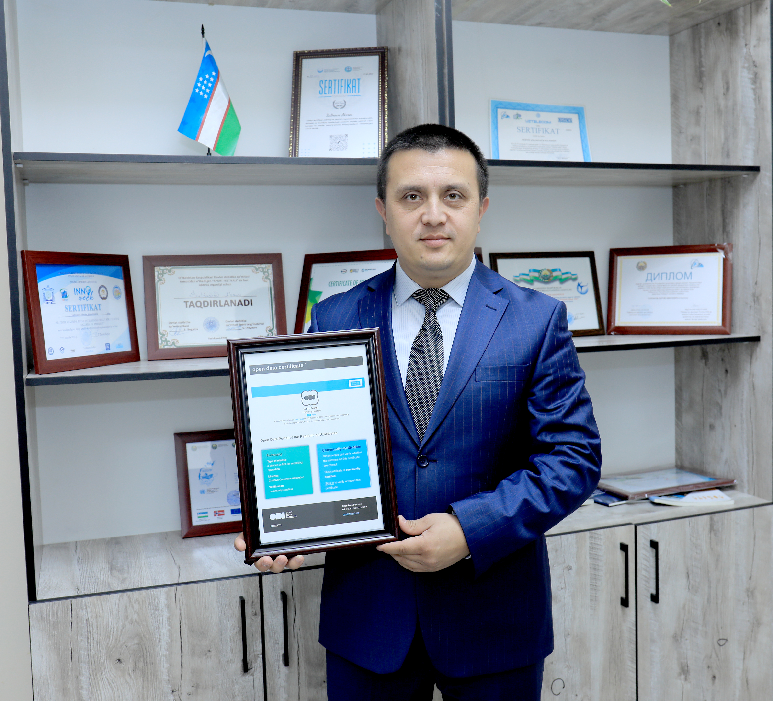 2023-yil 5-dekabr kuni O‘zbekiston Respublikasining Ochiq ma’lumotlar portali data.egov.uz Ochiq ma’lumotlar institutining (Open Data Institute) “Gold level” oltin darajadagi sertifikatini oldi. Bu foydalanuvchilar ishonishi mumkin bo‘lgan barqaror qo‘llab-quvvatlanadigan ochiq ma’lumotlar muntazam nashr etilishini anglatadi