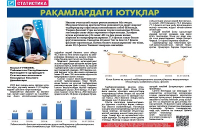 “Yangi Oʻzbekiston” gazetasining 2023- yil 16- avgustdagi 162- sonida Oʻzbekiston Respublikasi Prezidenti huzuridagi Statistika agentligi boshqarma boshligʻi oʻrinbosari Komil Gulboyevning “Raqamlardagi yutuqlar” nomli maqolasi chop etildi
