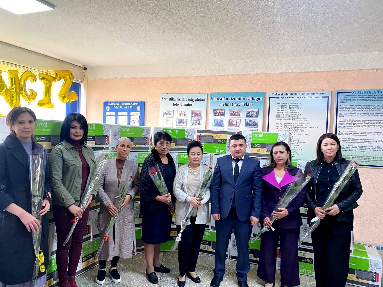 Toshkent viloyati statistika boshqarmasi boshlig‘i Sh.Jamoldinov boshchiligida boshqarma tizimidagi xotin-qizlarni 8-mart – «Xalqaro xotin-qizlar» bayrami bilan tabriklab, sovg‘alar topshirildi
