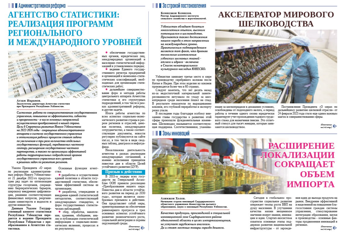 “Правда Востока” gazetasining 2023- yil 25- martdagi 58- sonida Oʻzbekiston Respublikasi Prezidenti huzuridagi Statistika agentligi